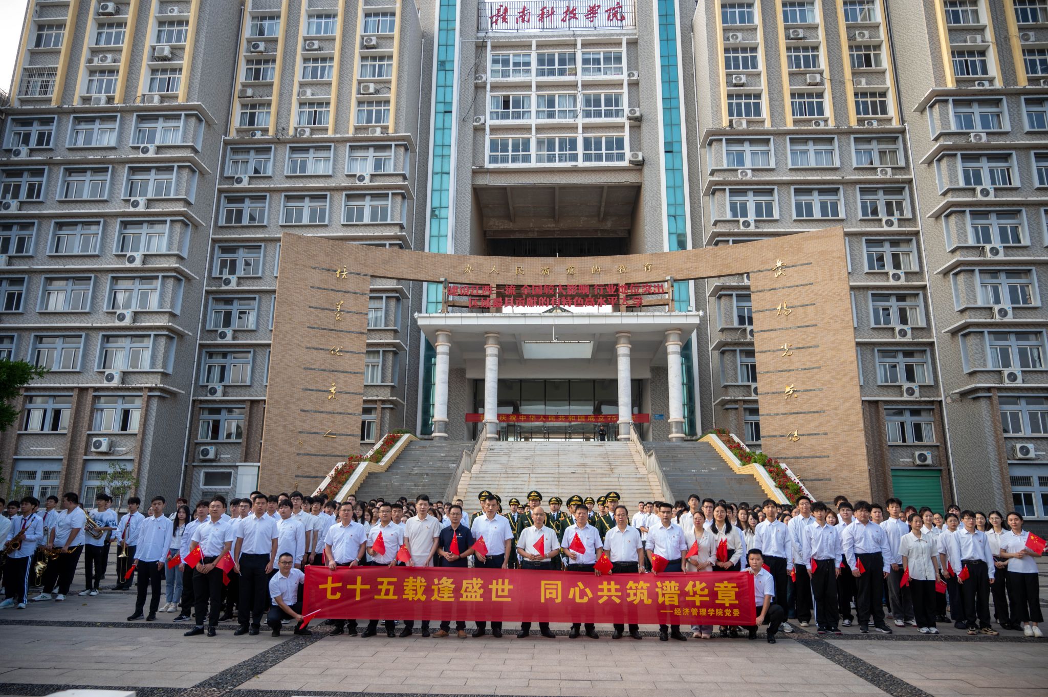 本网讯:为庆祝中华人民共和国成立75周年,10月1日上午,欧冠官方网站入口在崇善楼北门广场以“七十五载逢盛世,同心共筑谱华章”为主题举行升旗仪式。校党委委员、组织人事部部长蓝晓植,党委学生工作部部长薛香恒,欧冠官方网站入口党委书记肖永鸿、副院长钟滨出席此次活动。党委学生工作部教师代表、欧冠官方网站入口党委党员代表、教师代表、学生代表参加此次活动。