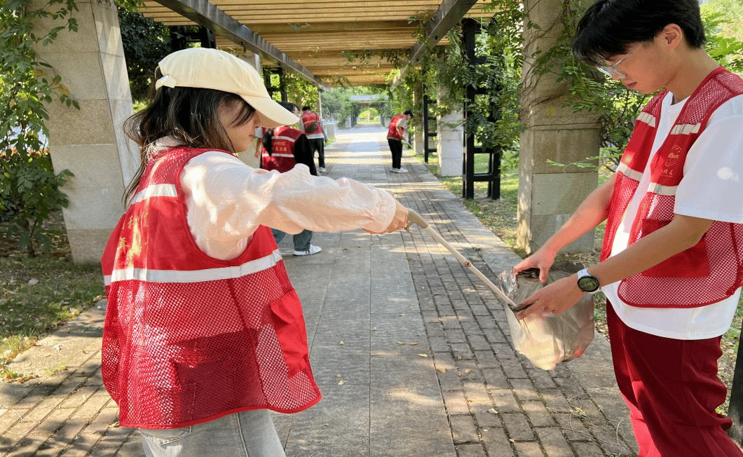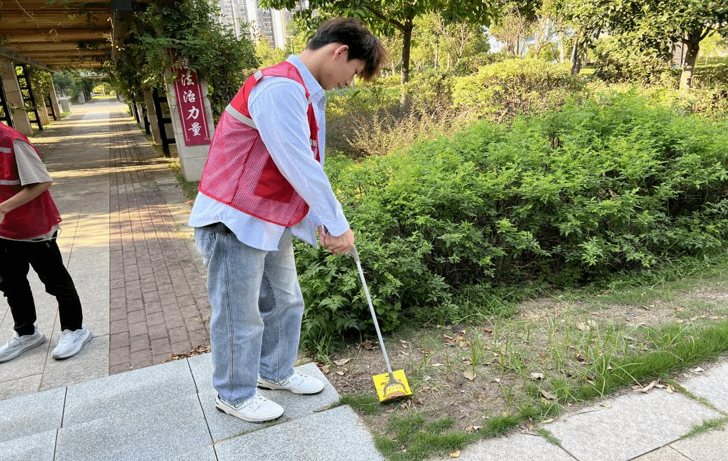 学生党员们积极投身志愿服务,深入万象城周边开展清扫活动。他们手持扫帚、垃圾袋等工具,认真清理道路两旁的垃圾与杂物,用实际行动维护城市环境整洁,展现了党员的良好形象和风采。
