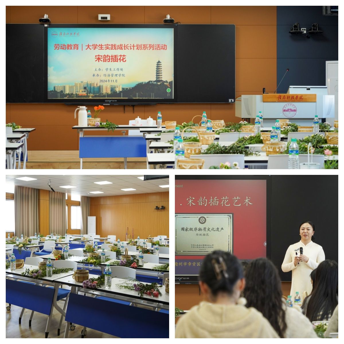 本网讯:11月27日下午,欧冠官网于崇善楼Z628教室开展“劳动赣科”大学生实践成长计划宋韵插花活动。活动邀请赣南·赣州文明夜校老师、章贡区第七批宋韵插花艺术非遗传承人李华莹为热爱花艺的40余名师生授课。