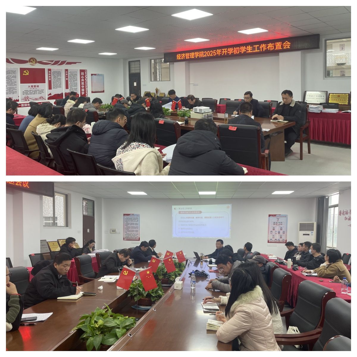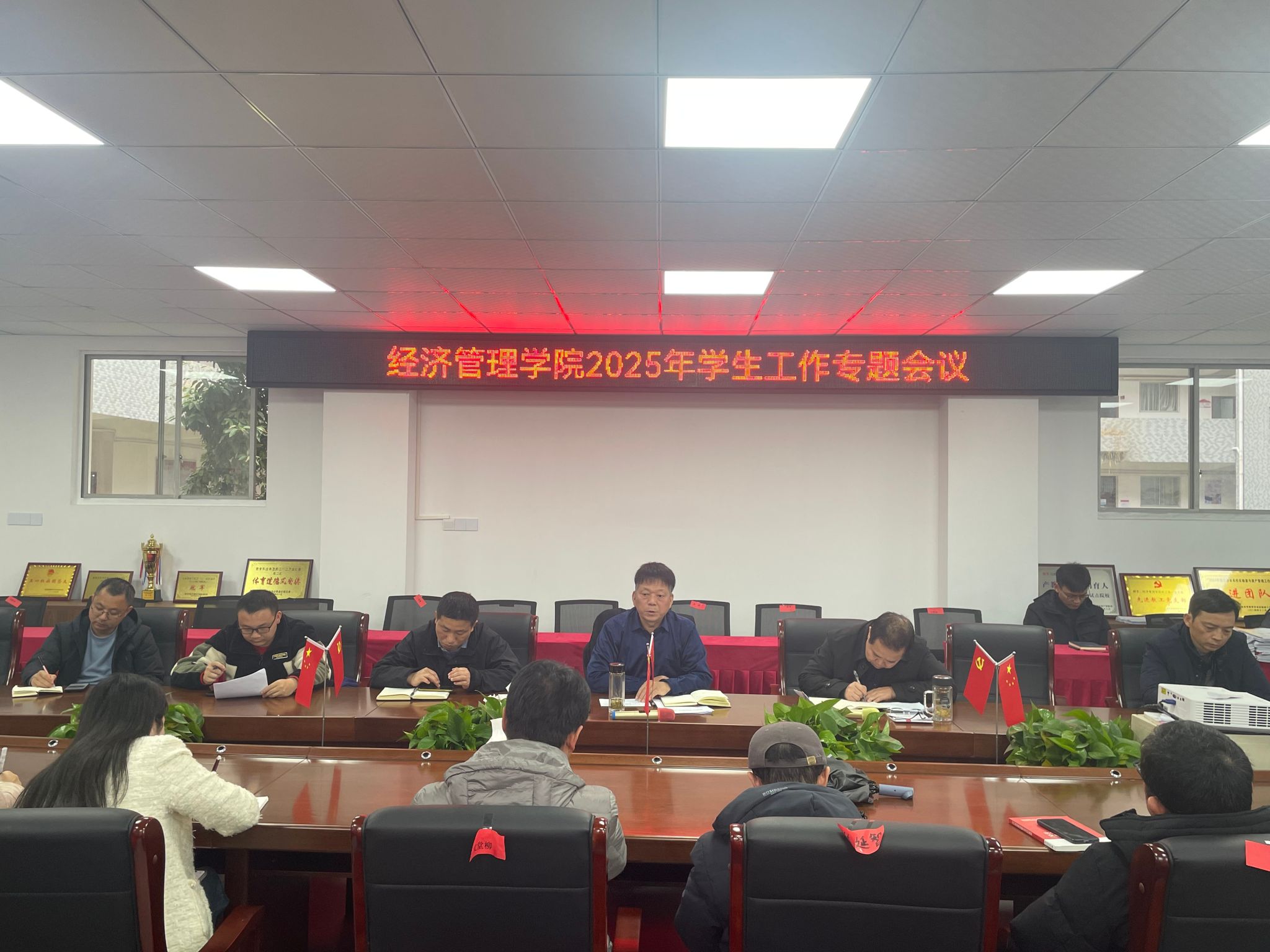 会上,梁文学做2024年工作总结暨2025年工作计划,强调了新学期学生工作的重要性和紧迫性,邹雄刚阐述新学期学生工作具体安排。随后,梁文学做2025年学生工作专题部署,对大学生思想动态、意识形态、党团建设、学风建设、安全稳定等方面的工作进行了全面部署,他强调,全体班主任、辅导员要切实增强责任感和使命感,精心组织好开学的各项工作,密切关注学生思想动态,组织好“开学第一课”,加强安全教育,增强安全意识,确保学生顺利返校并快速融入新学期的学习生活。