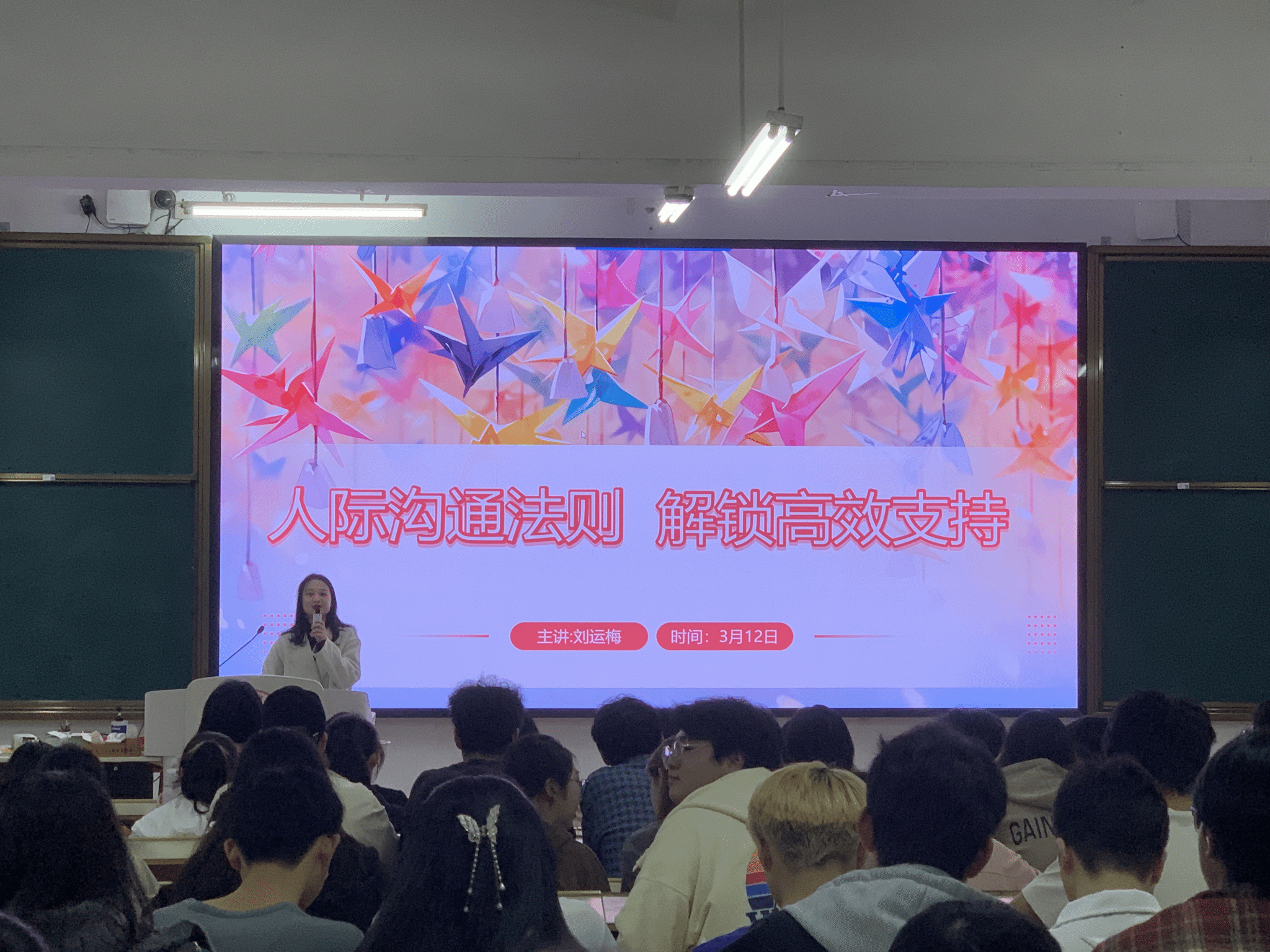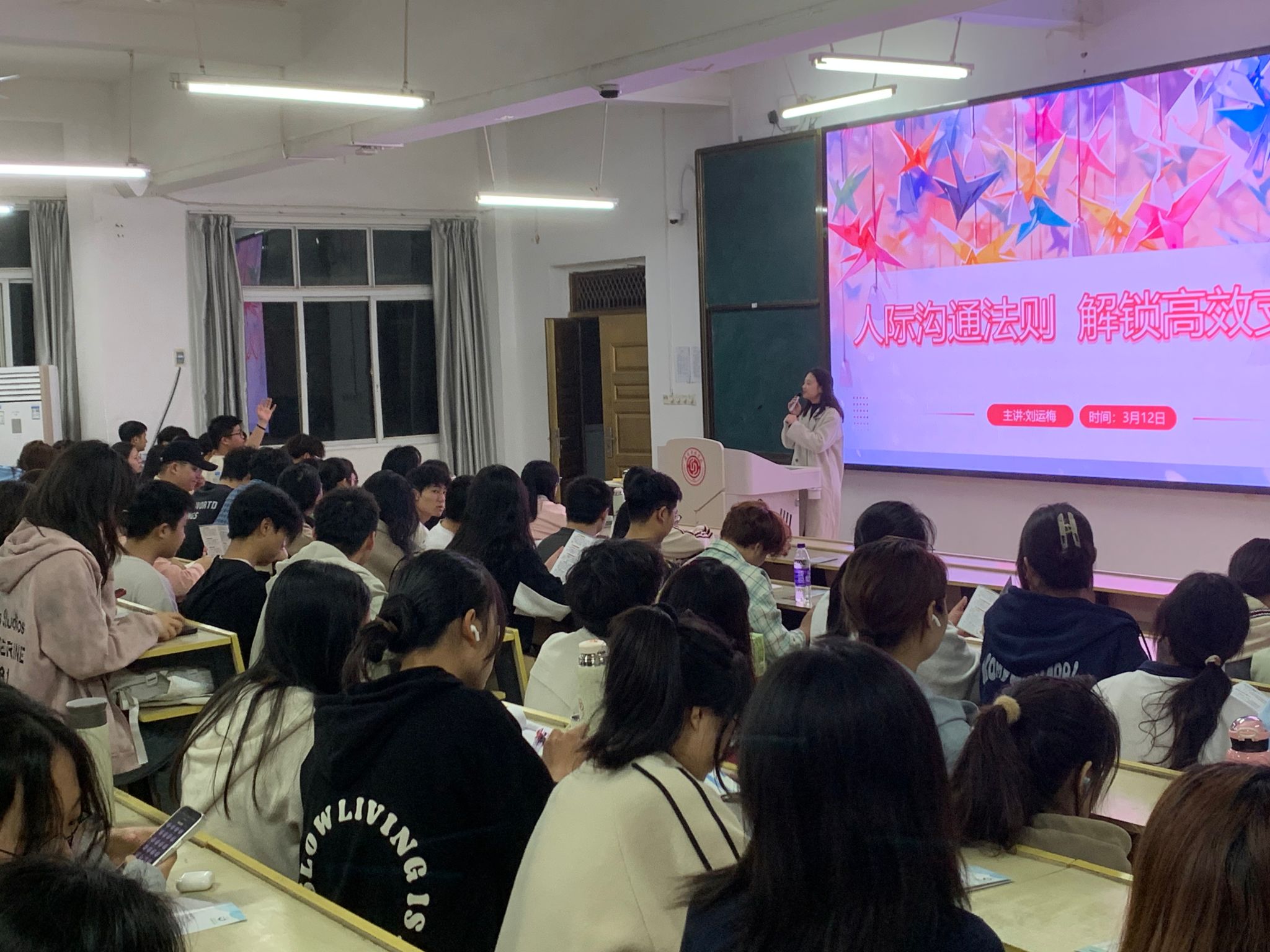 本网讯:3月12日晚上,欧冠官方网站入口在主教Z1D1开展以 “人际沟通法则,解锁高校支持” 为主题的心理健康讲座,本次讲座由心理健康教育与咨询中心刘运梅老师主讲。欧冠官方网站入口各班心理委员、心理联络员等200余名学生参加讲座。