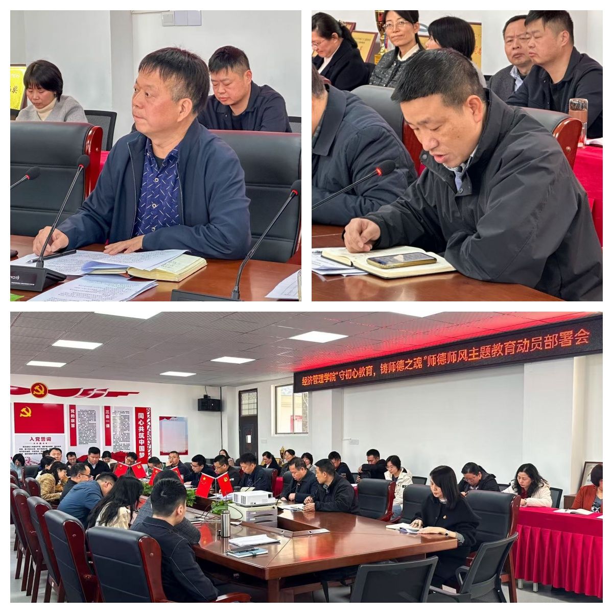 本网讯:为深入贯彻落实习近平总书记关于教育的重要论述和党的二十大和二十届二中、三中全会精神,推动欧冠官方网站入口“精益求‘经’点石成金”党建品牌里的“精益铸魂”工程建设。3月19日,欧冠官方网站入口在新民楼305会议室召开“守初心教育,铸师德之魂”主题教育动员部署会。欧冠官方网站入口党委书记肖永鸿、学院领导班子成员及全体教师参加了此次会议。会议由肖永鸿主持。