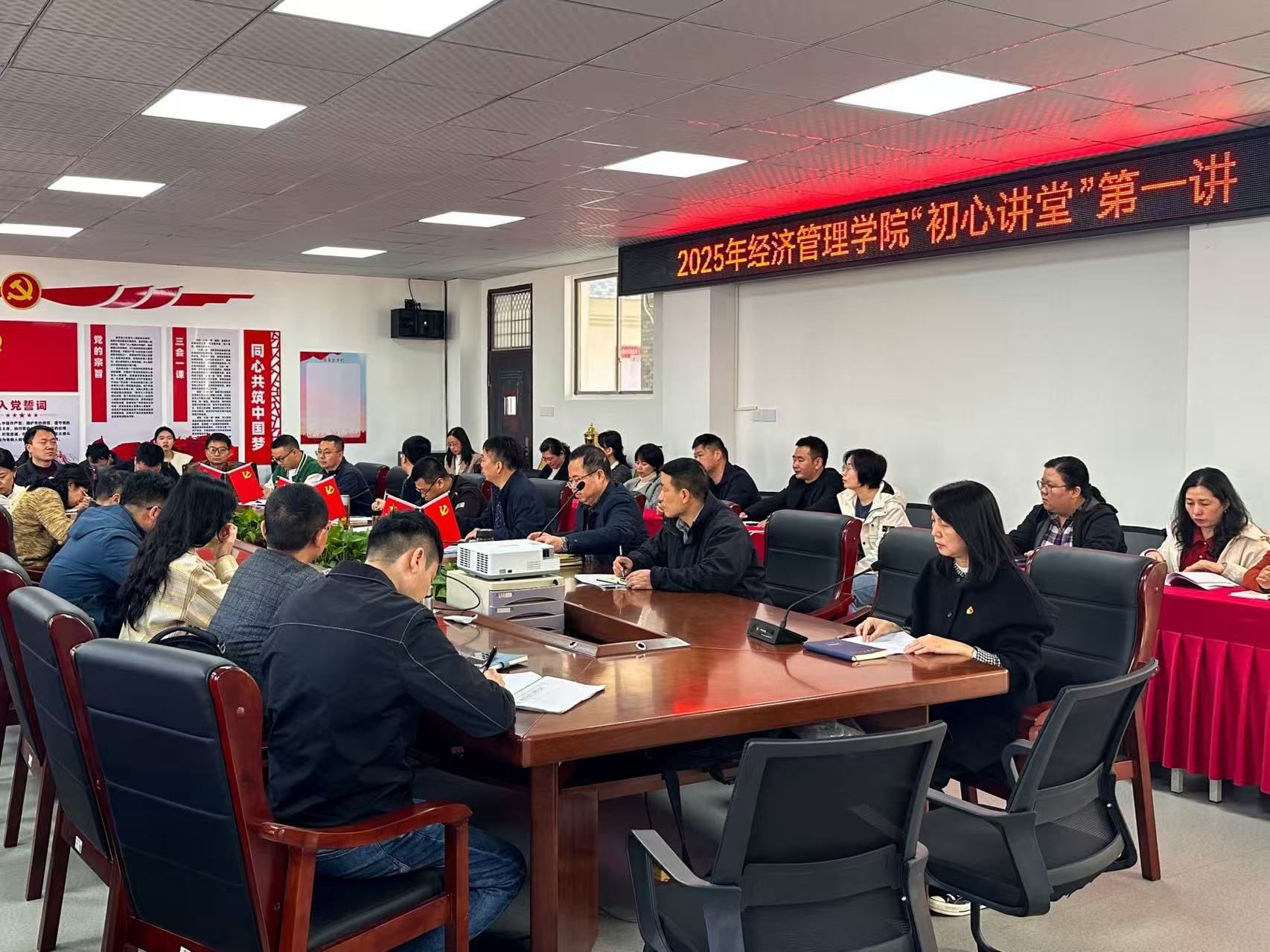 本网讯:为深入学习贯彻习近平新时代中国特色社会主义思想,3月19日上午,欧冠官方网站入口在新民楼305会议室召开2025年“初心讲堂”第一讲。首场讲座邀请工商管理教研室吴丹老师作《师以匠心弦歌不辍,赓续初心立德树人》专题讲座,欧冠官方网站入口党委书记肖永鸿、学院领导班子及全体教职工参与。