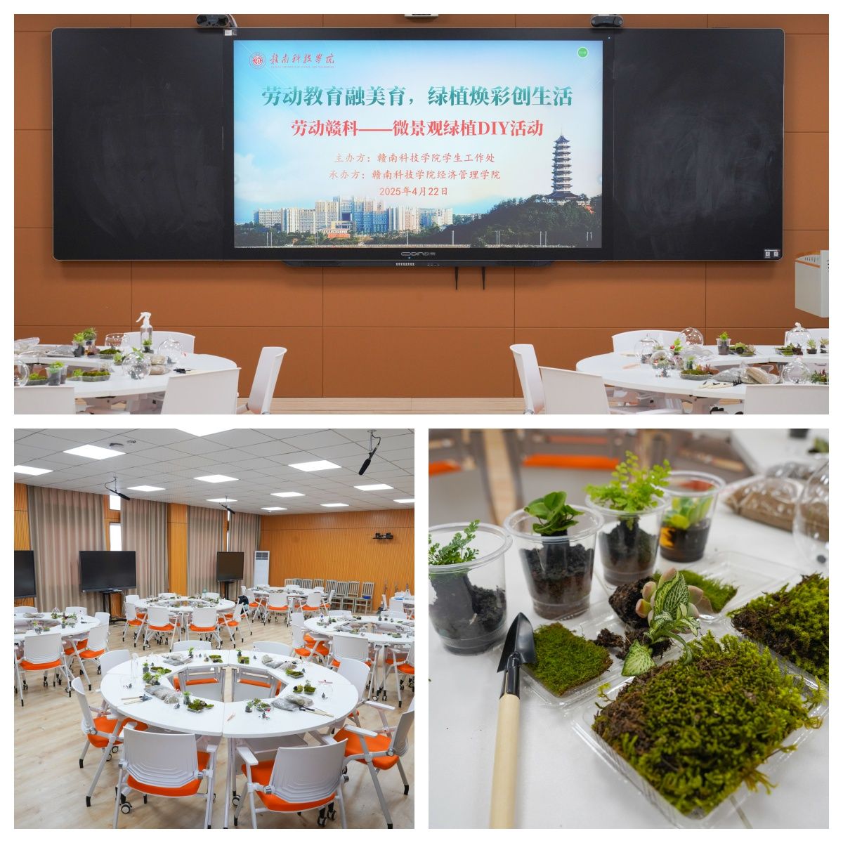 本网讯:为践行“五育并举”教育理念,促进学生全面发展,4月22日下午,欧冠官网于崇善楼Z629教室开展“劳动赣科”大学生实践成长计划之植物微景观制作活动。学校40余名师生参与此次活动。