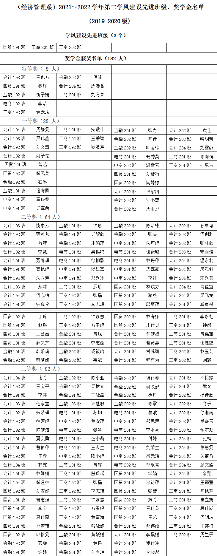 根据《赣南科技学院学生综合奖学金评定实施办法(试行)》《赣南科技学院学风建设先进班级评选办法(试行)》有关规定,按照院学工办《学生综合素质测评、综合奖学金评定及学风建设先进班级评选相关通知》要求,我系认真组织开展了2021-2022学年第二学期综合奖学金和学风建设先进班级评审工作。