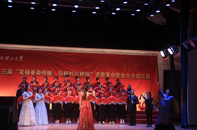 比赛中,会计203班演唱的《映山红》唱出了同学们对红军的热爱,对英雄的崇敬;会计191班的《我们走进十月的阳光》以轻快的节奏唱出无论风雨,只要与祖国携手并肩,就会走向美好未来的希冀;会计192班演唱的《革命人永远是年轻》歌唱出了对浴血抗战的革命战士们赞美与敬重。