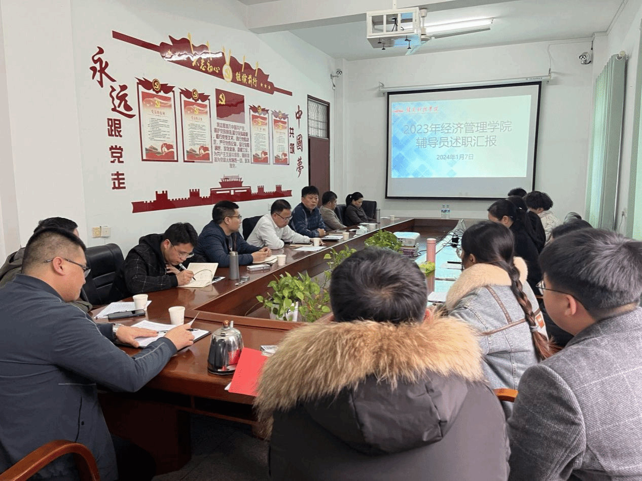 本网讯:为促进辅导员之间的工作交流,持续深化辅导员队伍建设,推动学生工作管理水平高质量发展,经济管理系于1月7日下午在2教309会议室开展2023年度辅导员工作述职大会。欧冠官方网站入口党委书记肖永鸿,系领导班子钟滨、王波、梁文学以及各教研室主任担任评委,欧冠官方网站入口全体辅导员参加本次述职。