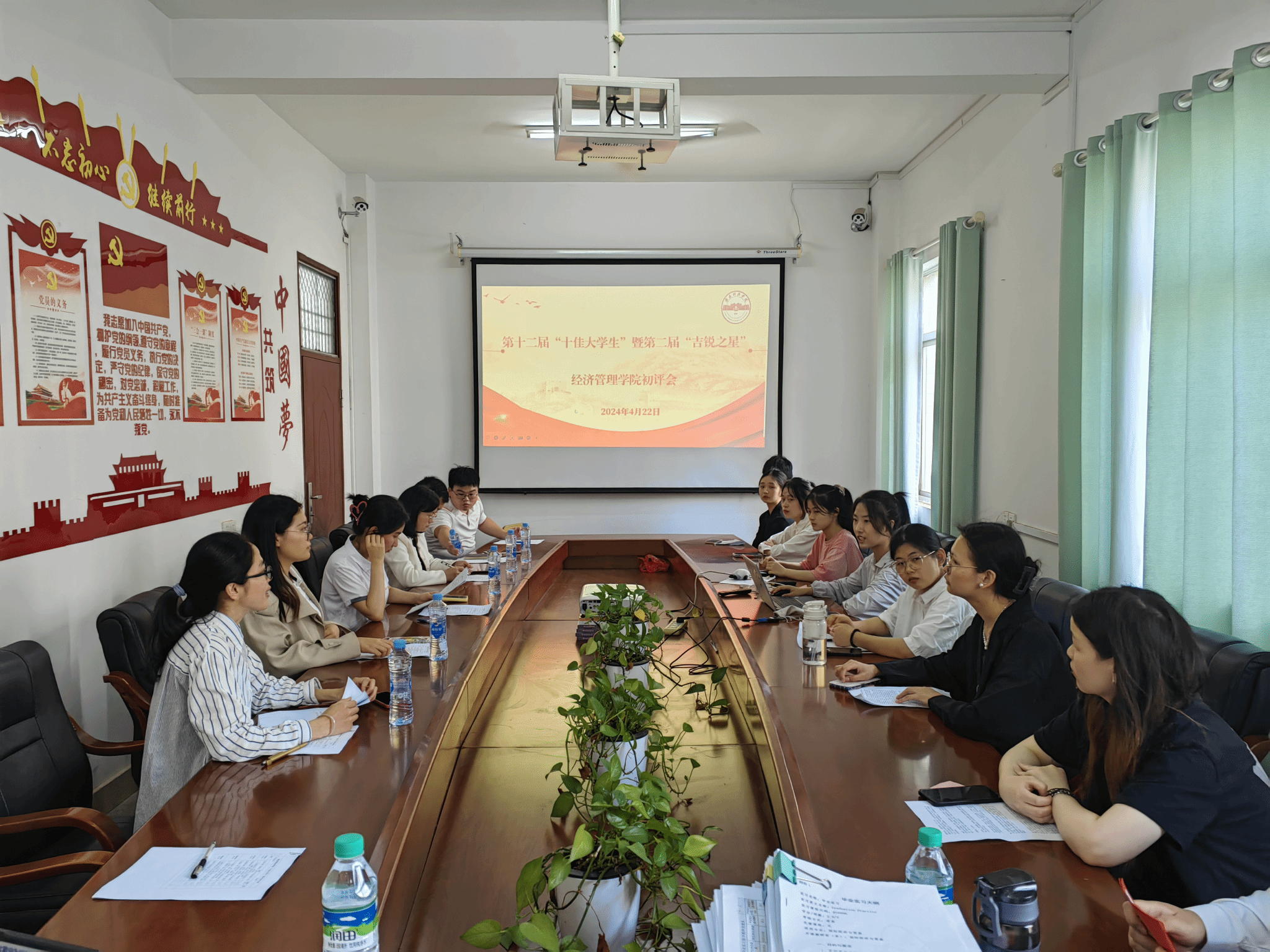 本网讯:为树立学生先进典型,充分发挥优秀学生的榜样示范作用,引导和激励广大学生勤奋学习、不断进取,4月22日下午,欧冠官方网站入口在2教309会议室开展第十二届“十佳大学生”暨第二届“吉锐之星”初评会。初评会由欧冠官方网站入口辅导员郭惠珍、谢晖慧、刘显成、张煜、刘芳、王诗琪、王鑫楠担任评委老师。