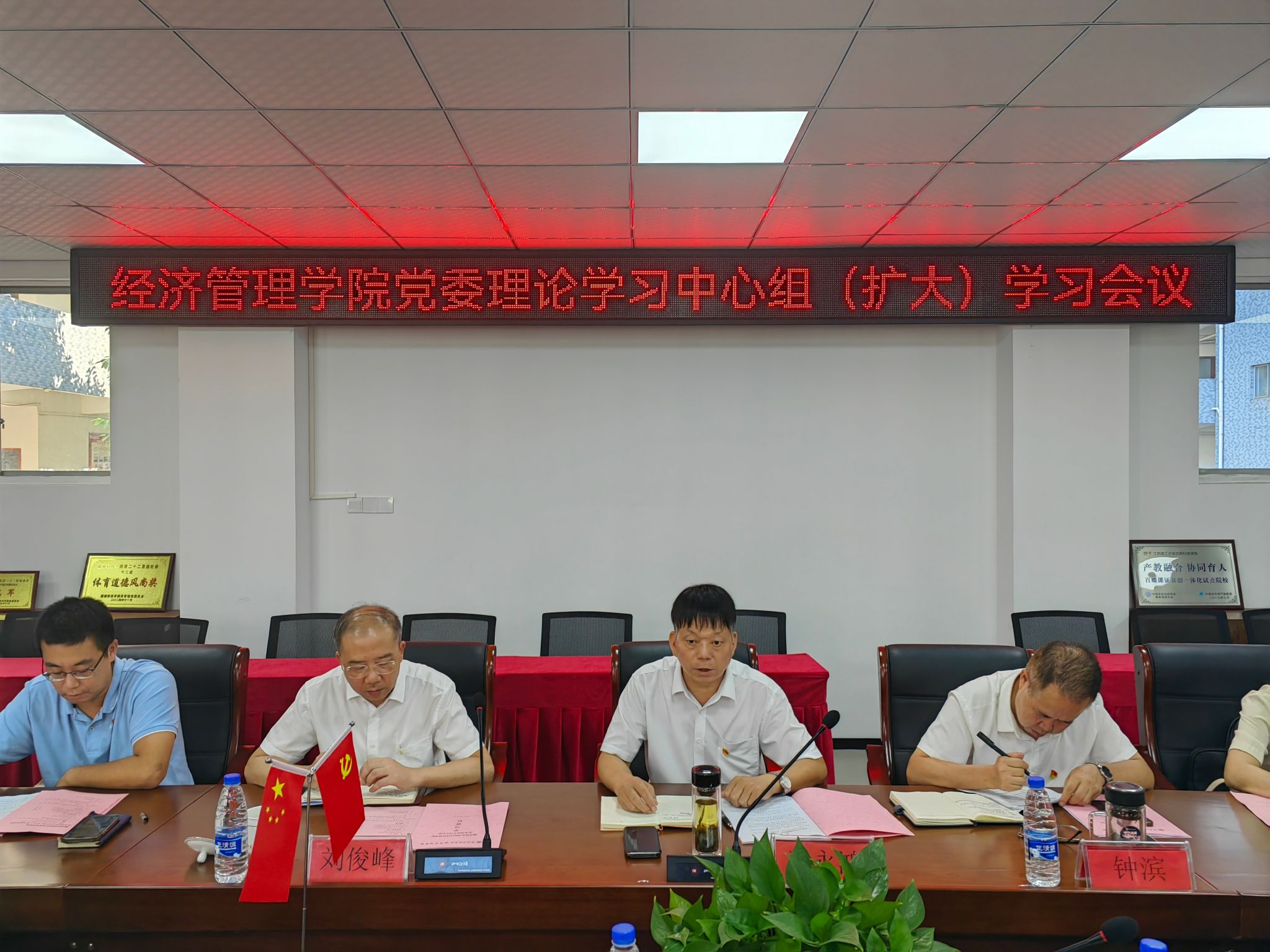 本网讯:9月16日下午,欧冠官方网站入口党委以“深入学习贯彻《习近平经济文选》第一卷,以实干实绩推动学院事业高质量发展”为题,在新民楼305党员活动室召开理论学习中心组(扩大)学习会议。会议由欧冠官方网站入口党委书记肖永鸿主持,党委委员、副院长钟滨及其他学院党委领导班子成员参加,各党支部书记列席,资源与土木工程学院党委书记刘俊峰一行三人到会指导。