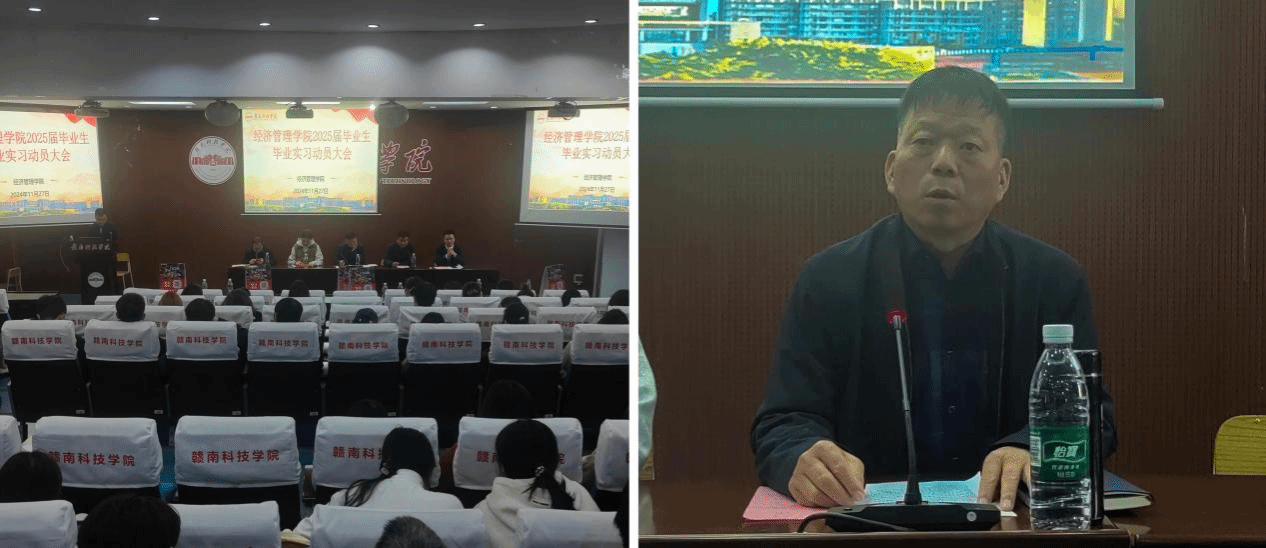 会议伊始,华东物流城、经开区万达招商、赣州零越汽车用品有限公司等企业在现场进行岗位推荐,与2025届毕业生进行了现场交流。同时,学院教学负责人王波对34家企业毕业实习需求专业、岗位要求、需求数量、实习地点和实习待遇等进行介绍,并把毕业实习岗位需求表下发给学生。紧接着,学院学工负责人梁文学布置毕业实习安全事宜,从人身安全、交通安全、情绪与心理健康、法治与安全教育及网络安全五个方面对2025届毕业生外出实习做安全提醒,提醒毕业生外出实习时期同样应注意保障安全。