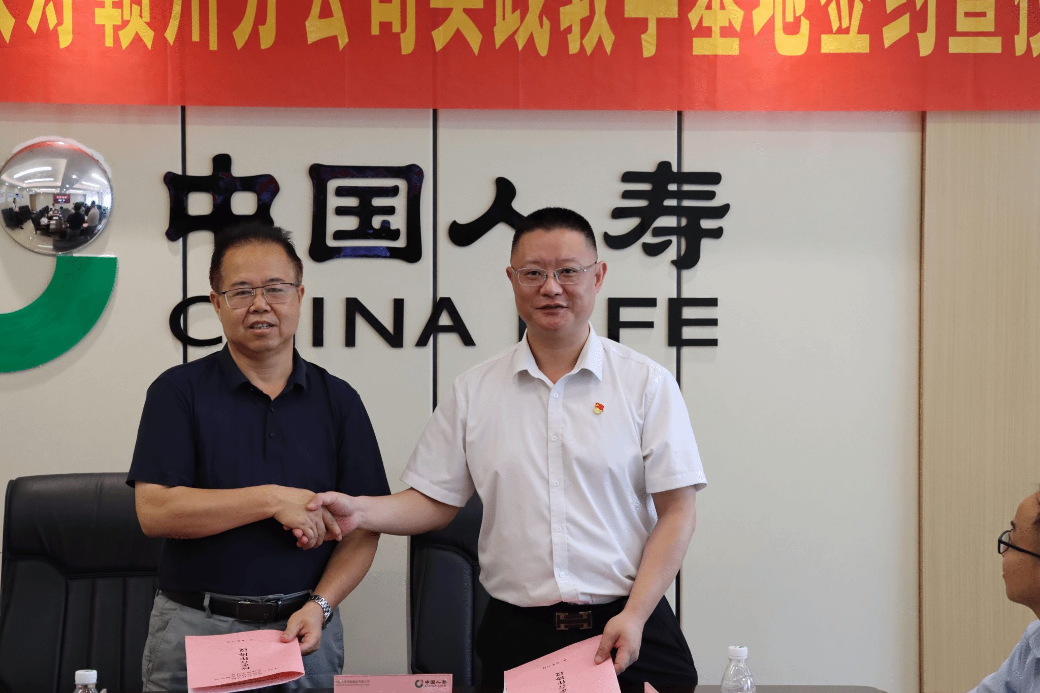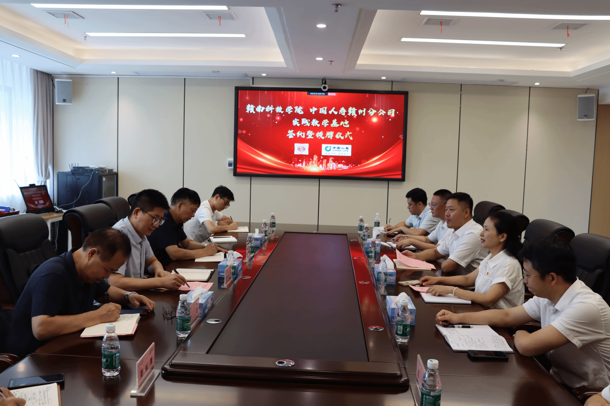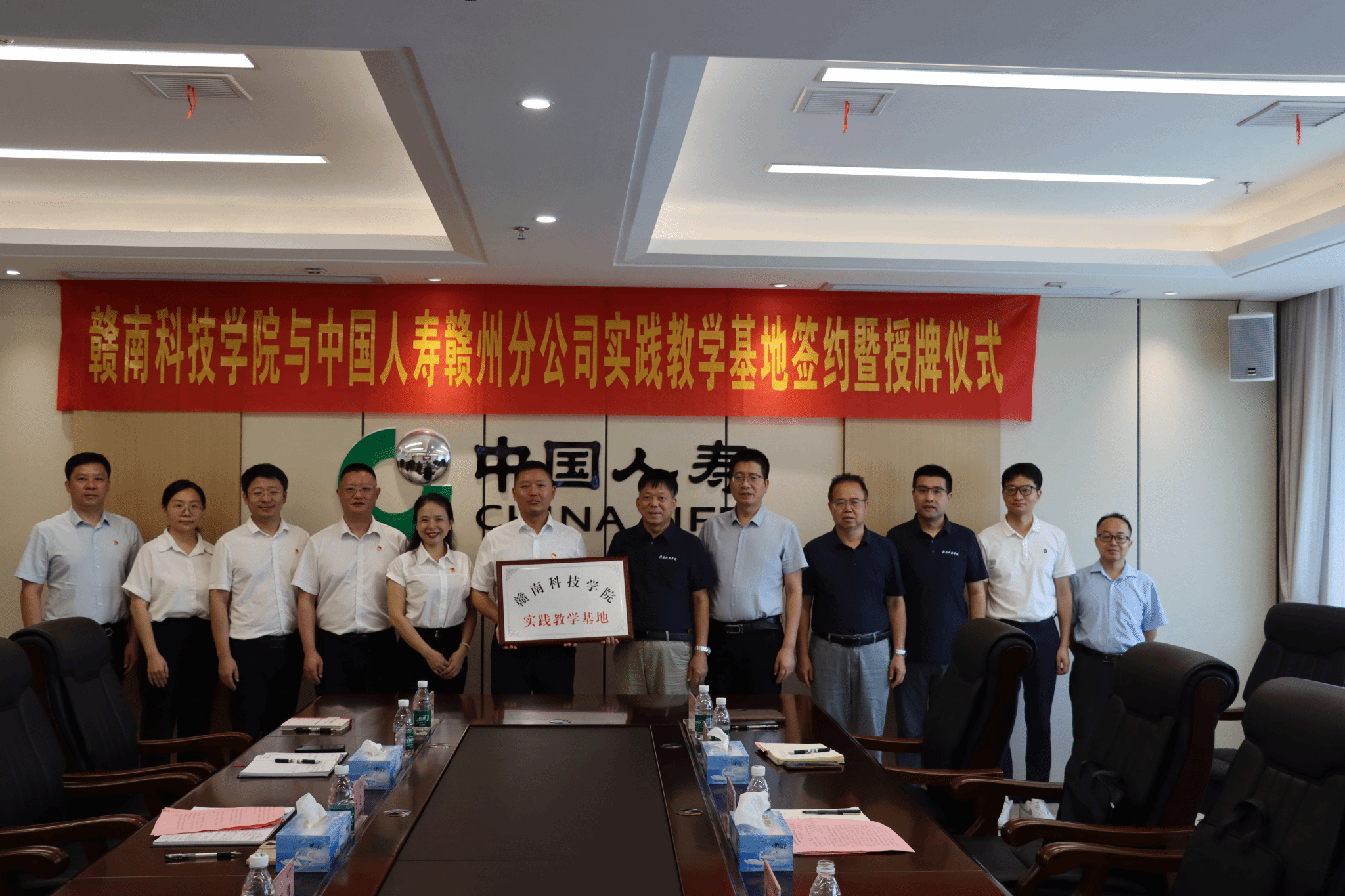 本网讯:6月24日上午,欧冠官网与中国人寿赣州分公司实践教学基地签约暨授牌仪式在中国人寿赣州分公司举行。赣南科技学院教务处处长付玉华、中国人寿赣州分公司主要负责人邵百强出席并致辞;赣南科技学院欧冠官方网站入口党委书记肖永鸿,党委委员、副院长钟滨,党委委员王波,中国人寿赣州分公司党委委员、总经理助理顾明出席仪式。中国人寿赣州分公司党委委员、副总经理谭云兰主持。