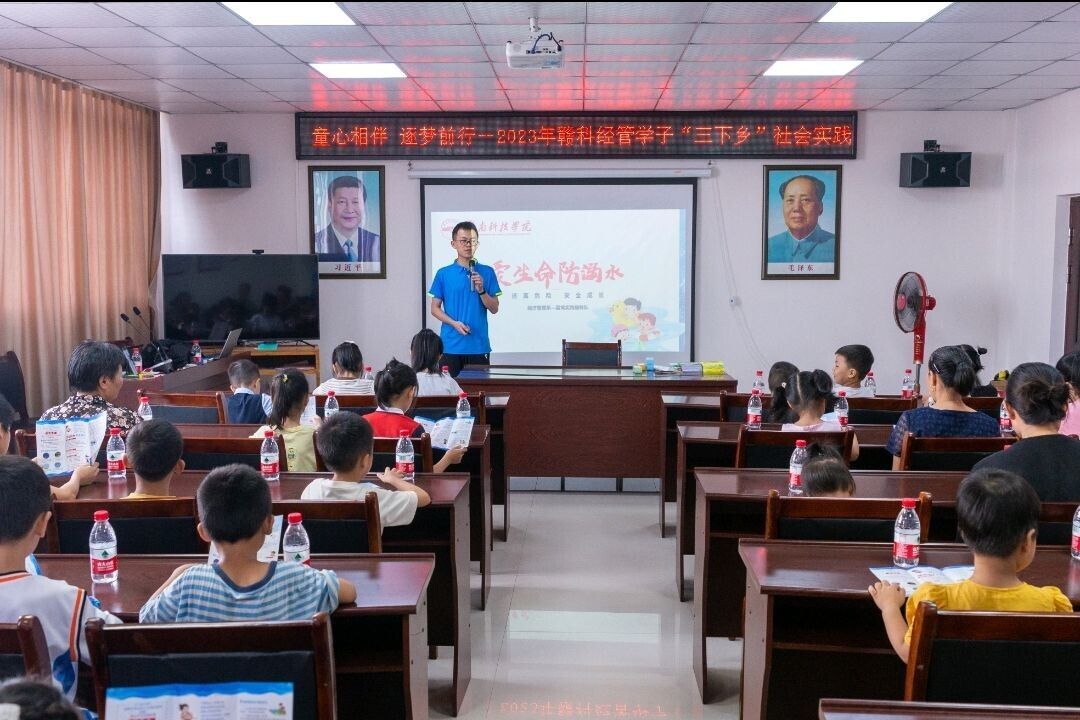 蓝鸢队于7月1日上午9时,来到了江西省赣州市龙南市武当县童心港湾开展防溺水教育。蓝鸢队通过PPT讲解,互动抢答,举手有奖的方式向当地小朋友们科普了一系列防溺水知识。